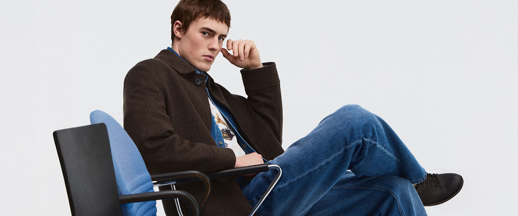 Для деловых сочетаний в коллекции представлены блейзер в «гусиную лапку», хлопковые рубашки и широкие брюки со стрелками. Среди изделий для городских прогулок — однобортное пальто из плотной смесовой шерсти, рубашка из денима, лонгслив из джерси, футболки с принтом, прямые джинсы и комплект в спортивном стиле с контрастной отделкой.
